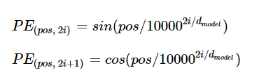 식을 보면 인덱스가 짝수일 경우는 사인 함수, 홀수일 경우는 코사인 함수를 사용한다.